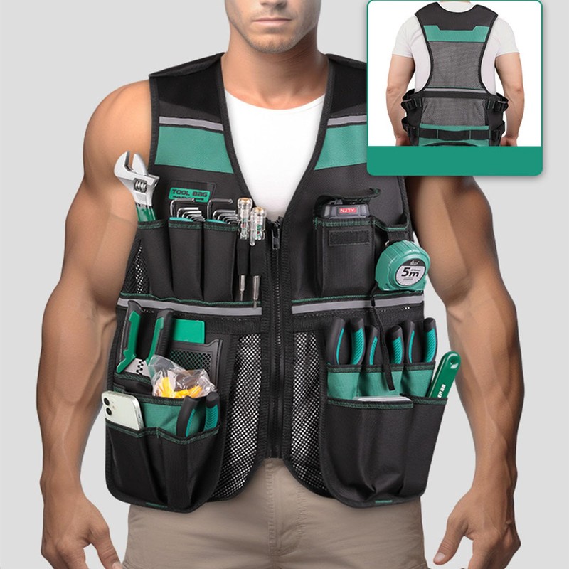 PISKGODSF Tool Vest for Men with Pocket can Safely Store Tools, Work Vest is Durable and Suitable for Construction Work, Carpenters, Plumbers, Electricians, Maintenance Workers (Green)