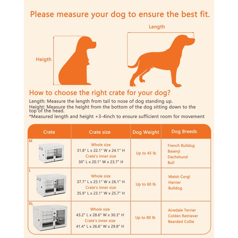 Note: A well-fitting dog crate makes your dog feel more comfortable. Please measure the size of your pet to choose the size of the dog cage, and carefully check the product main picture that introduces the size to confirm.