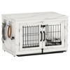 Piskyet Wooden Dog Crate Furniture with 360°Rotatable Removable Dog Bowls, Dog Crate End Table with Tray, Double Doors Dog Kennels for Dogs(M:31.8" L*22.1" W*24.1" H,Marble White)