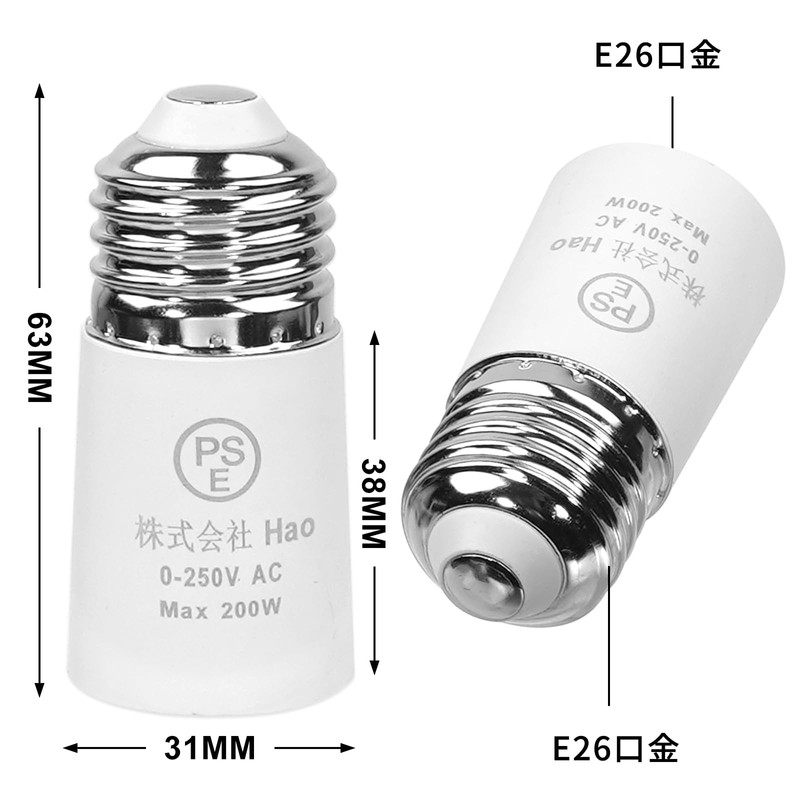 • 2, E26 to E26 Base Extension Adapter Extends approximately 1.6 inches (4 cm). Light fixture for extending E26 base when not reaching socket