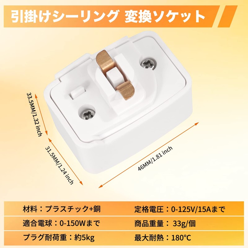 - 2, Specifications: Color: White, Compatible Load: Up to 15A/125V, Packaging: 2 pieces, Size: H 31.5 mm x W 23.5 mm x Total Length 47 mm, Material: Plastic+Copper, Weight: 33g/pcs