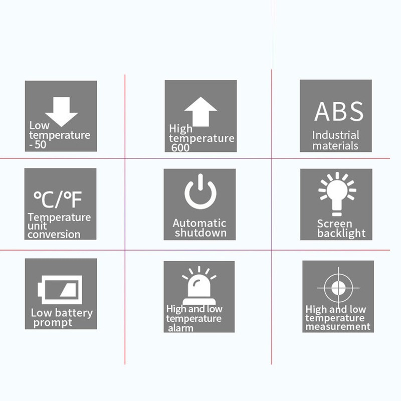 - CON RETROILUMINACIÓN: Este producto es la solución perfecta para cocinar, hacer barbacoas, hornos de pizza y más, ya que ofrece mediciones de calor rápidas, fáciles y precisas a una distancia cómoda. Después de seleccionar el interruptor de retroiluminación, la fuente de alimentación de un termómetro industrial se apagará automáticamente en 7 segundos sin ninguna operación.