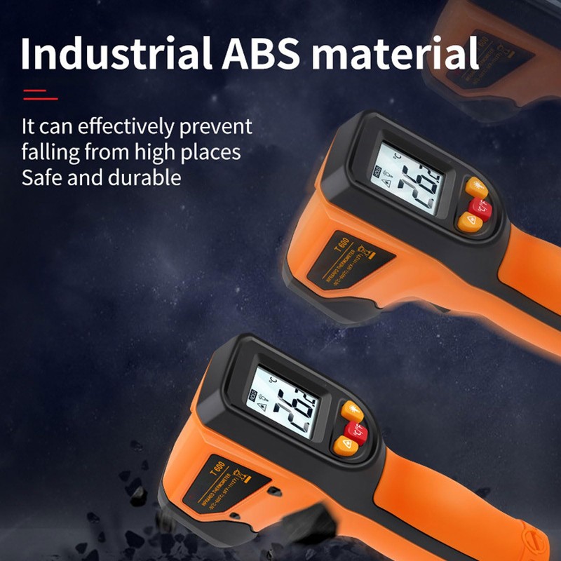 - ABS DURADERO: la pistola de temperatura láser digital sin utiliza material ABS, posee resistencia al impacto, resistencia a los arañazos y es respetuosa con el medio ambiente. Ya sea que esté asando un bistec a la parrilla, horneándolo en el horno o fríelo en la estufa, este termómetro digital infrarrojo es un complemento indispensable para su cocina.
