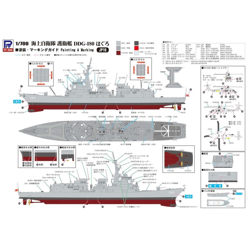Pit Road DDG-180 1/700 Skywave Series Marine Self-Defense Force Defense Ship Haguro Painted Plastic Model JP16