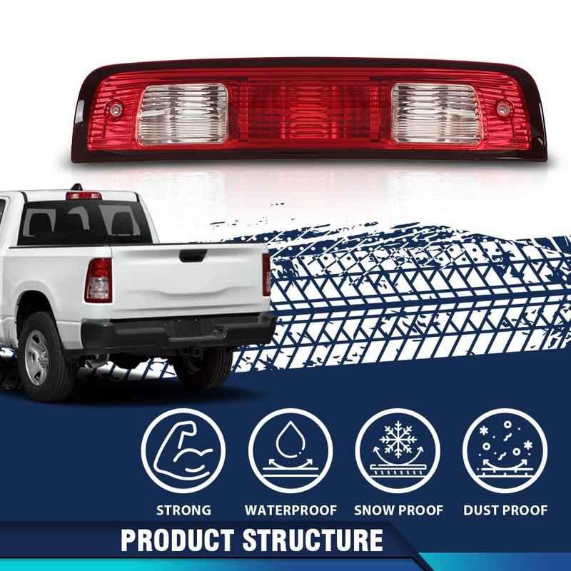 3rd Third Brake Light Compatible with Dodge Ram 1500 2009-2017/Compatible with Dodge Ram 2500 3500 2010-2017 W/o Bulbs And Wiring Harness White & Red 923-270, 68412024AA