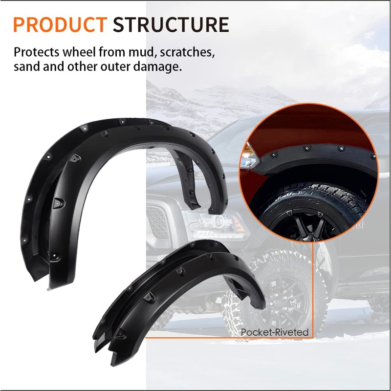 - UV PROTECTION: UV protection component enhances the strength of fender flares and strongly resists cracking, warping and dusting.