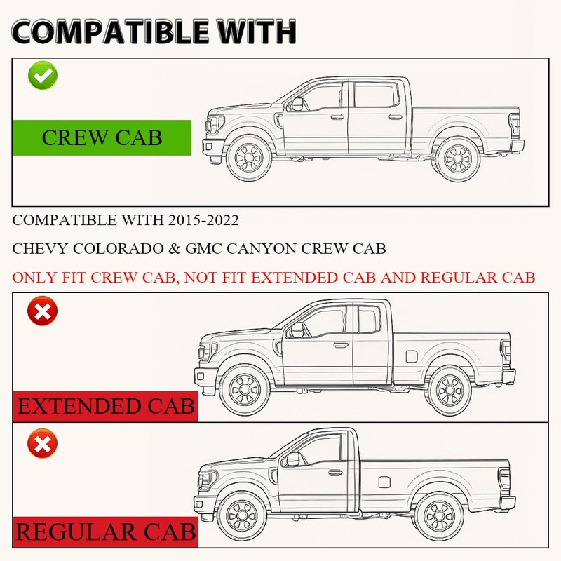 - 【Fitment】Floor Mats Compatible with Chevy Colorado Crew Cab 2015-2022, Compatible with GMC Canyon Crew Cab 2015-2022