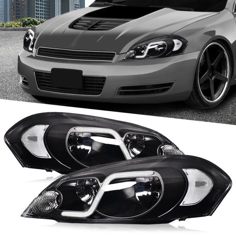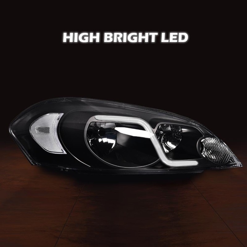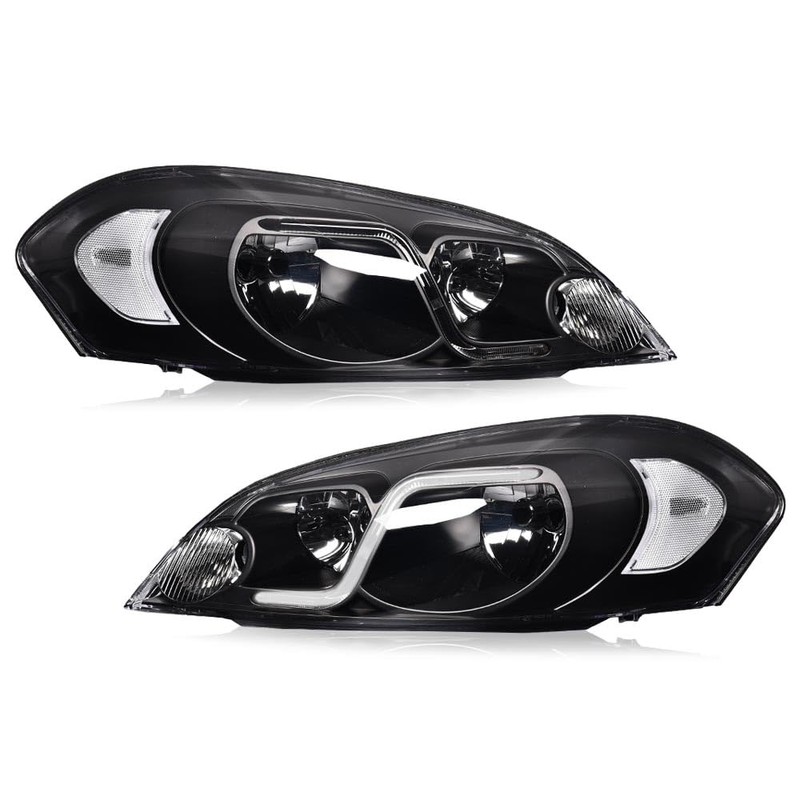 PIT66 Front LED DRL Headlights Assembly lamp Left & Right Side Compatible with Chevy Impala 2006-2013/Fit for Chevy Monte Carlo 2006-2007, Clear lens Black Housing