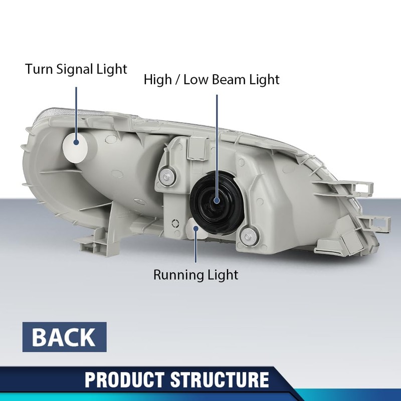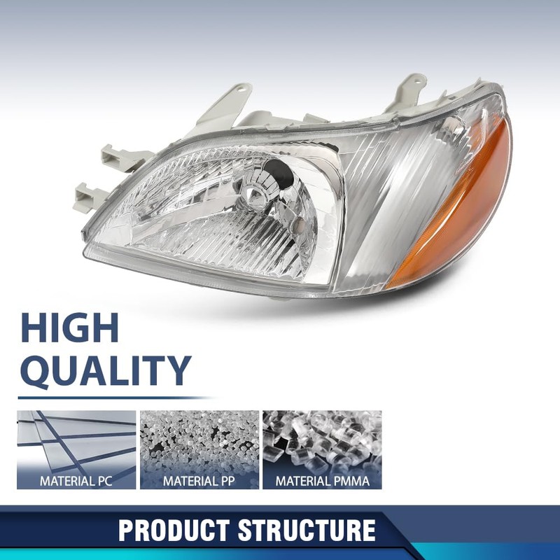 • Material: The head light is made of durable PP & PC & PMMA materials, which provide better wear resistance, ageing resistance and aesthetics, improving the overall appearance of the car