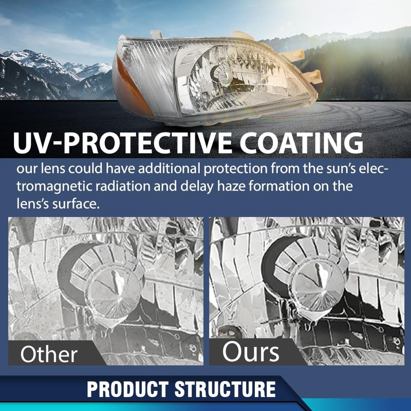 PIT66 Headlight Assembly, Front HeadLamp 1 Pair Compatible with Toyota Echo 2000-2002 8115052190, 8111052190