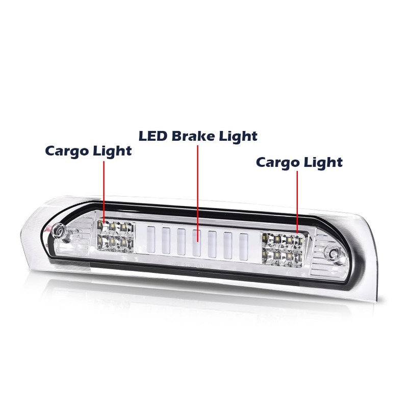 PIT66 LED 3rd Brake Light Lamp Compatible with Dodge Ram 1500 2002-2008 /Dodge Ram 2500 3500 2003-2009 (Fits Models with Cargo Lights Only) Clear Lens Chrome Housing,Type I
