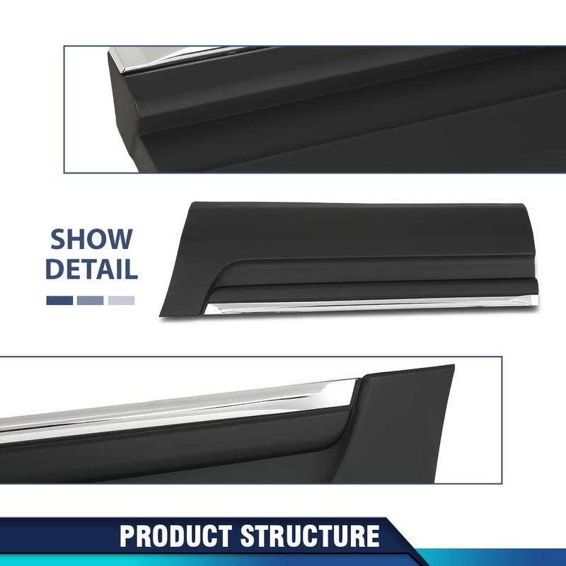 - Material: Our rear door body molding trim is constructed from rigid TEO to shield door edges from scratches, road debris, and impacts, preventing dents and paint damage while maintaining structural integrity over time