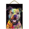 These made in the USA Pitbull dog signs are truly high quality. They consist of 1/2 inch thick wood with a rope for hanging attached to the back of the sign. The dog images are created by expert artist Dean Russo and applied to the wood with state of the art machines. Dress your house up and display your passion for your dog breed or purchase for a friend as they make a great gift for any dog breed lover. Sign reads: "Beware of Pitbulls They Will Steal Your Heart".