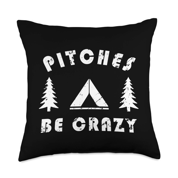 Pitches Be Crazy Funny Tarp Tent Camping Hiking Backpacking Throw Pillow