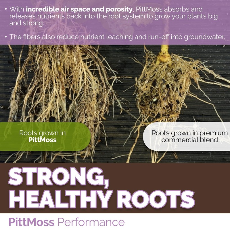 - PittMoss Performance is proudly produced in the United States from 99.4% recycled paper fibers and small amounts of organic bark. It has a nutrient composition of N (0.24%) P (0.11%) K (0.18%), which helps stimulate biological development.