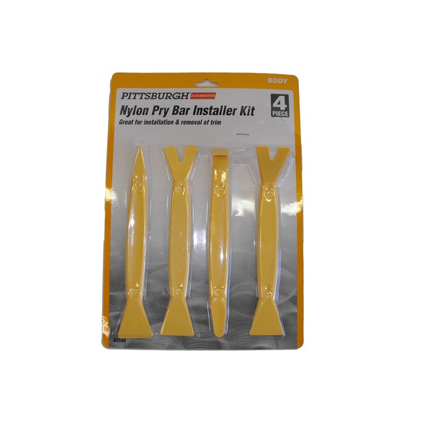 This set of four nylon pry bars is excellent for removing snap-in trim. Made from strong nylon material that won’t scratch or gouge your interior, this pry bar set includes straight, wedge, offset v-notch and straight v-notch angled heads. Strong material won't scratch or gouge your interior Includes straight, wedge, offset v-notch, straight v-notch