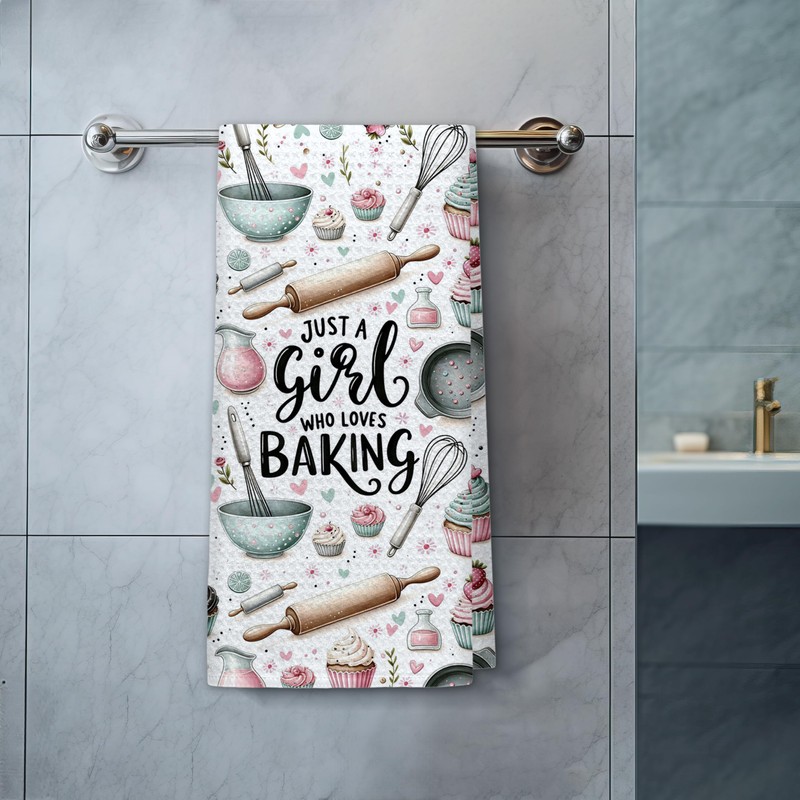 PIUD Gifts for Baking Lovers Women Kitchen Towels, Baker Gifts, Just a Girl Who Loves Baking Hand Dish Towels for Kitchen Bakery, 16x24 Inch