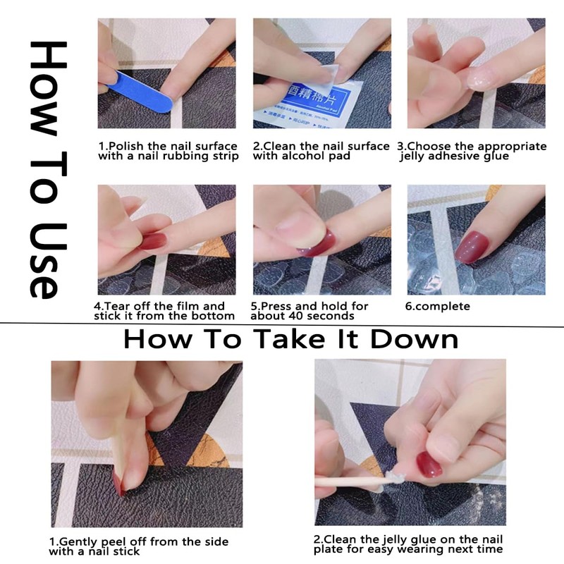 - Save Time: No need to wait. Traditional nail art requires steps such as application, drying, and lighting, which take a long time. The fake nails can be applied and used immediately, taking only a few minutes to complete.