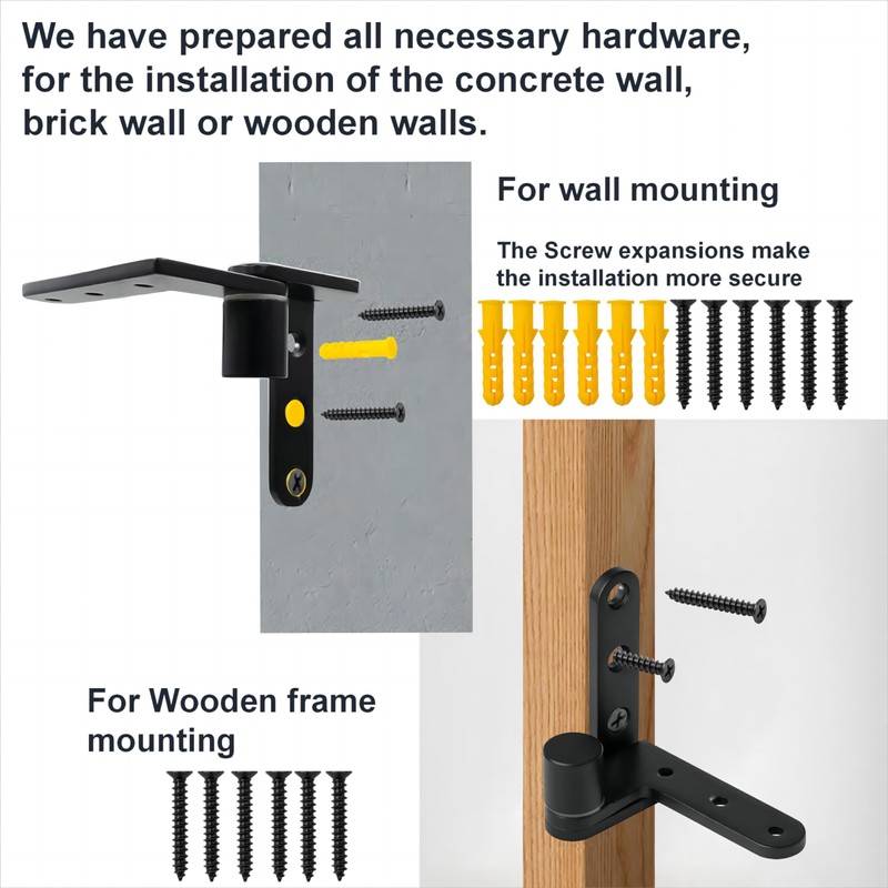 - ⊪【Easy Installation】We have provided the hardware required during the installation process and can install it right away.The thickness of the pivot hinge is 4.8mm/0.19in,You need to figure the spacing needed for clearance.It is also possible to cut grooves in the door and door frame installation location, sink the installation, and close more tightly