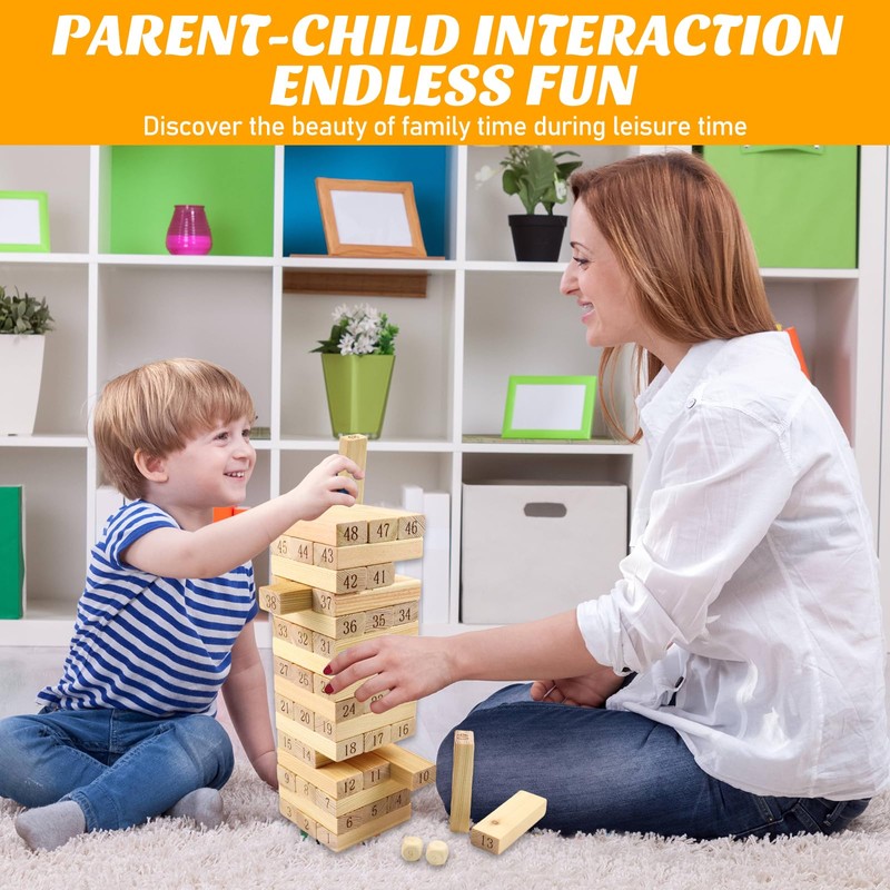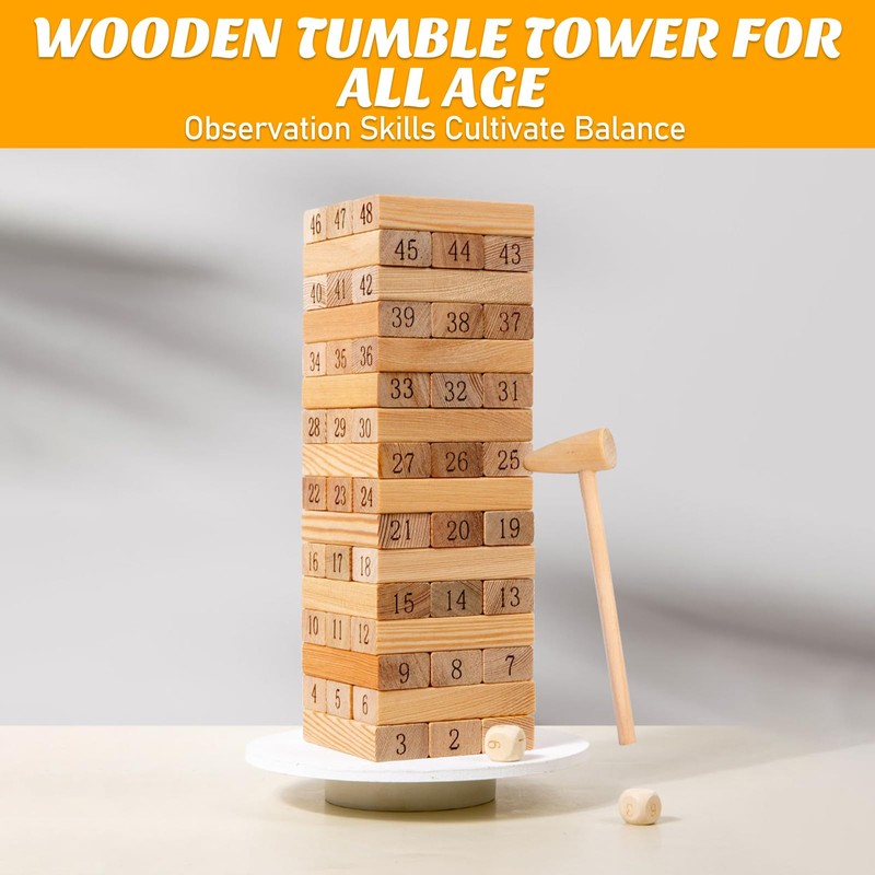 PIWOSGOL Wooden Wobble Tower 48 Building Blocks for Stacking, Stacking Game f...