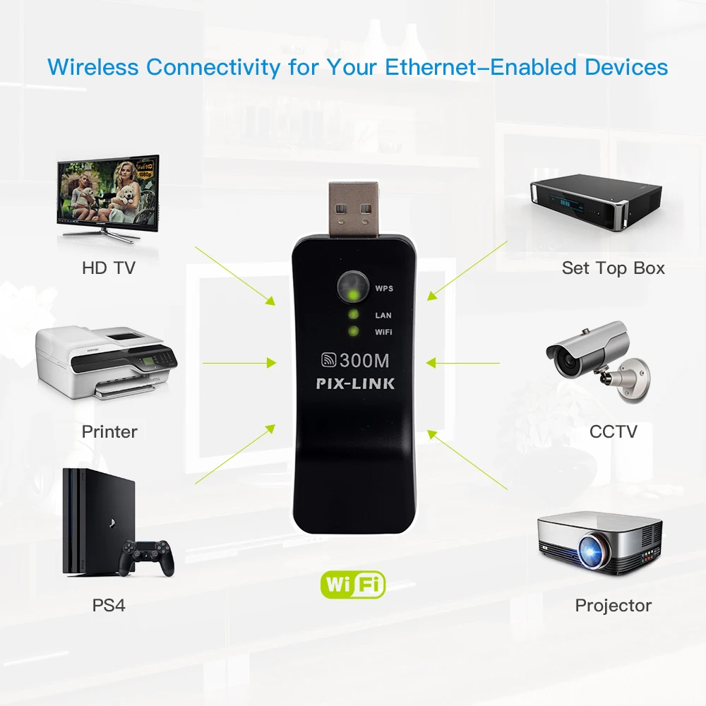 PIX-LINK PIXLINK Repeater 300Mbps Router's Wifi Range Extender Adapter Network WPS AP