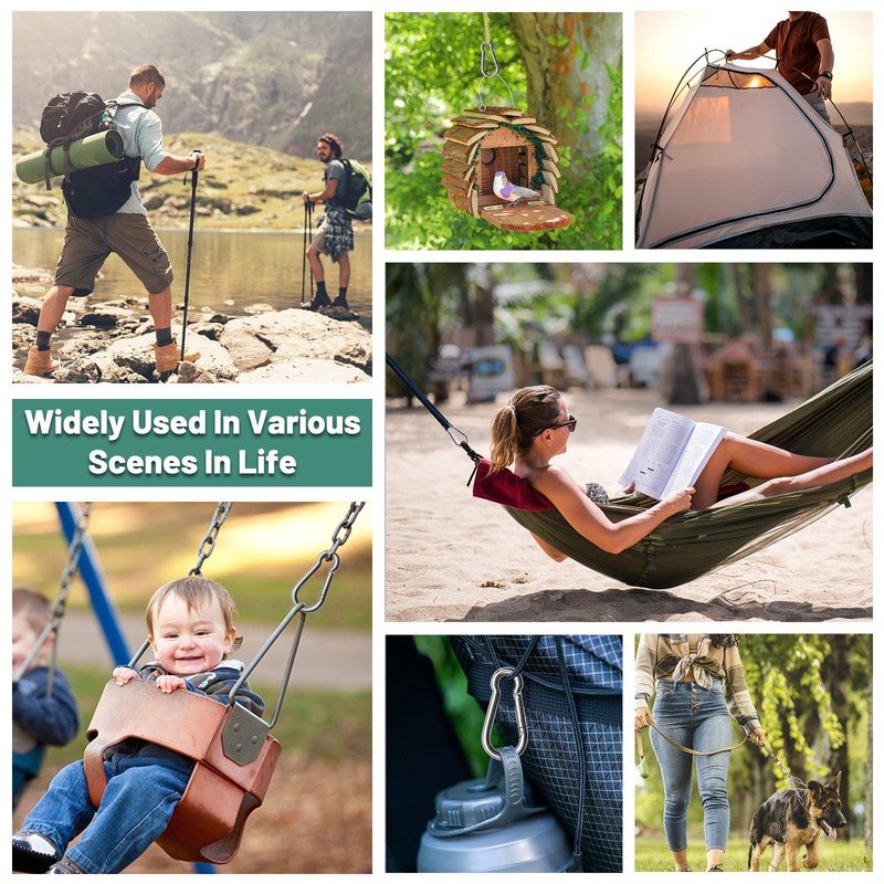 - Multipurpose: Carabiners are great accessories for your gym workouts, allowing you to clip indoor and outdoor equipment with ease. Perfect for Gantry, Smith machine, fitness attachment, outdoor work, hangs a hammock, swing, camping, chains, ropes, water bottle, backpack ect