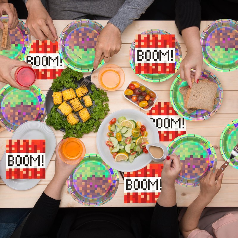 - Ideal for Multiple Party Themes:Whether you're hosting a Pixel birthday party, video game-themed event, or pixel-themed celebration, this set of Pixel plates and napkins is versatile enough for various occasions. It pairs well with other Pixel party supplies, such as tablecloths, banners, and decorations, making it an outstanding choice for any fun, creative gathering.