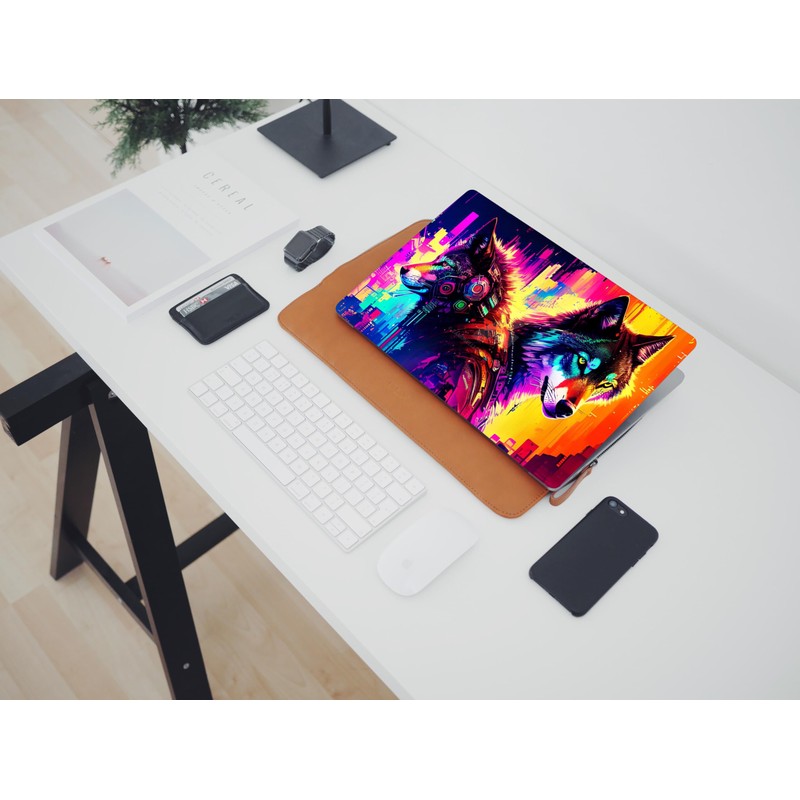 Pixel Pear Laptop Skin with Wolf 2 Computerized Paint Texture Pattern Design - Universal Vinyl Sticker Decal, Fits 13.3 14" 15" 15.4" 15.6" Laptops, Dustproof, Waterproof, Reusable Cover