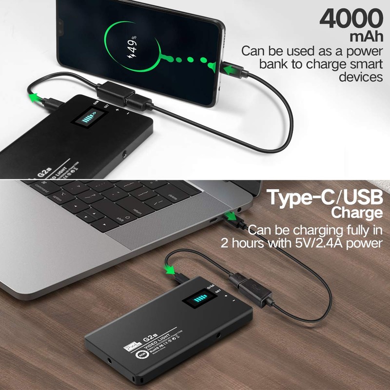 - 【BUILT-IN 4000mAh RECHARGEABLE BATTERY 】The high capacity battery can work last1.5 hours when it in 100% brightness @8500k. Quick charging enables it fully charged in 2hours with 5V/2.4A power. Type-C charging design makes it easy to charge with the USB charging cable everywhere. It also can be a power bank that supports USB power output.