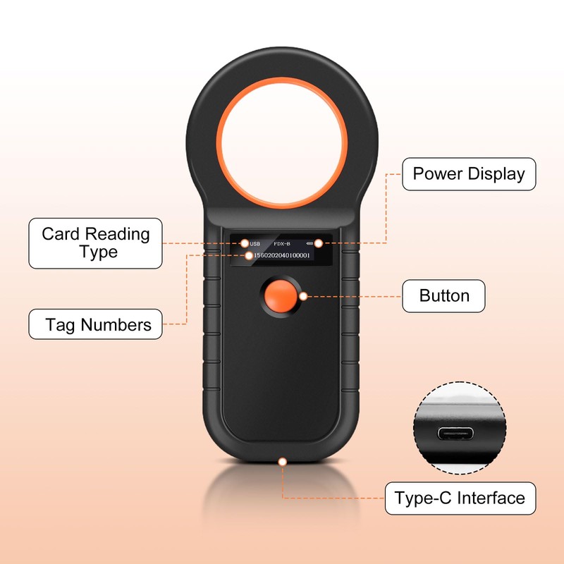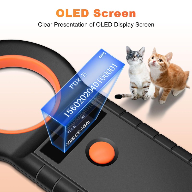 - OLED display: the pet ID chip reader adopts an OLED screen with high brightness, which can be clearly displayed indoors or outdoors under strong light conditions, and is equipped with a buzzer prompt.