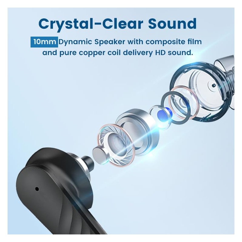 - [High-fidelity Audio and ENC Noise Reduction]: Bluetooth earbuds 10mm large size speaker driver delivers powerful bass, mellow midrange, and clear treble, reproducing your music vividly. Built-in high quality MIC, noise cancelling earbuds adopt ENC tech that effectively separates your voice from the ambient sound, and makes communication clear.
