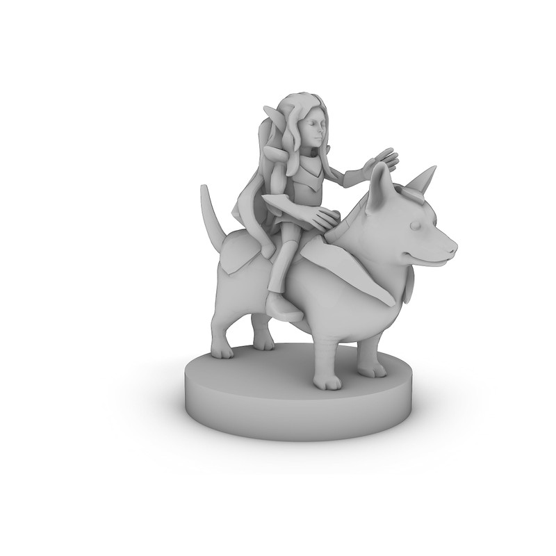 This Is a Pixie Warrior on a Corgi Tabletop DND Gaming Miniature 3d printed in high quality resin. These pieces are great for any tabletop game and add a new depth to your play and characthers! Piece size ranges depending on the piece if its marked medium or larger it will be bigger than a standard piece of 26mm. All Pieces are printed in high quality grey photopolymer resin ensuring no seams, no visible layer lines and an easy to paint game piece!