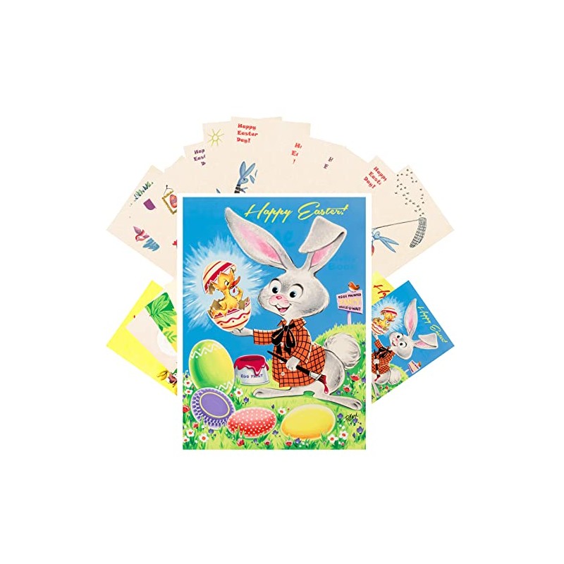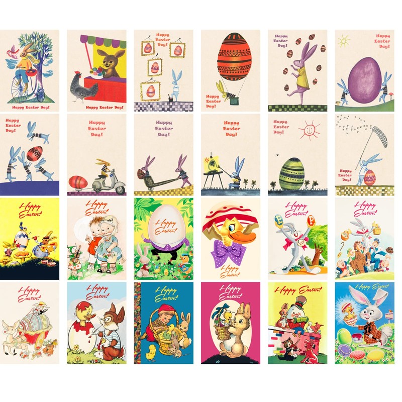 PIXILUV Vintage Postcards (24 pcs 4"x6" each) EASTER Bunny Eggs and Chicks Vintage Notecards Retro Easter Greeting Card Reprint