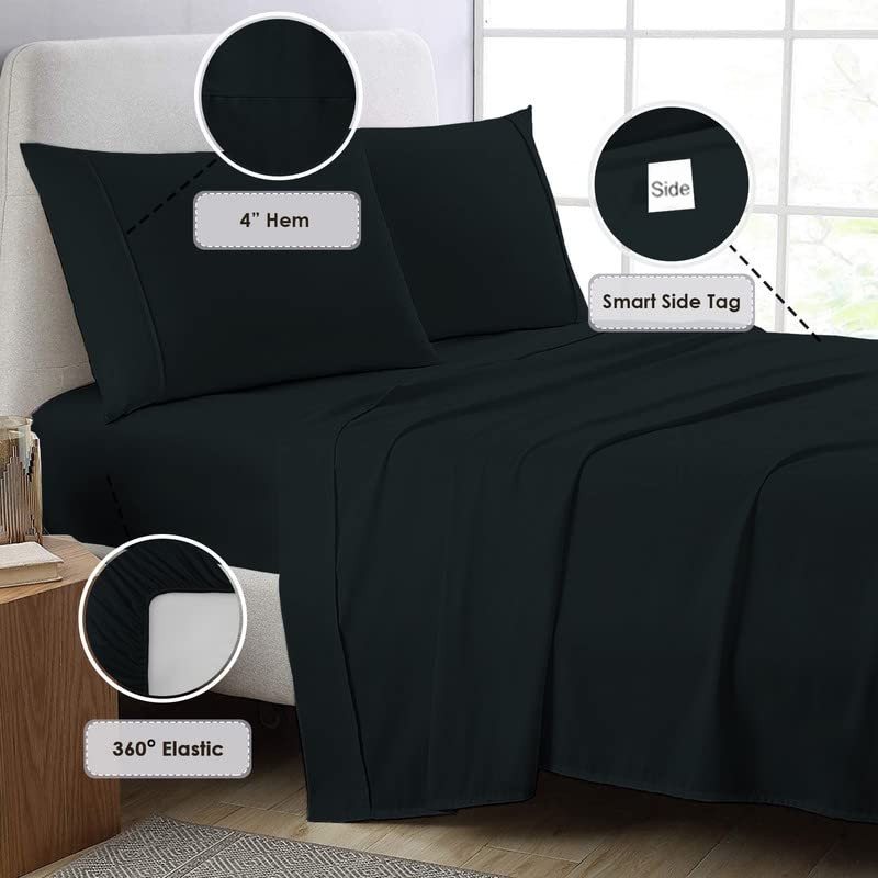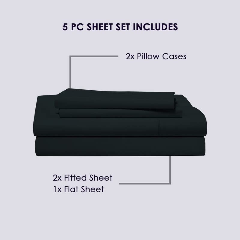 Pizuna 100% Cotton Split King Sheet Set Black, 800 Thread Count 100% Long Staple Cotton Split King Sheets for Adjustable Bed, 15" Deep Pocket Sheets (Combed Cotton Bed Sheets - 5PC)