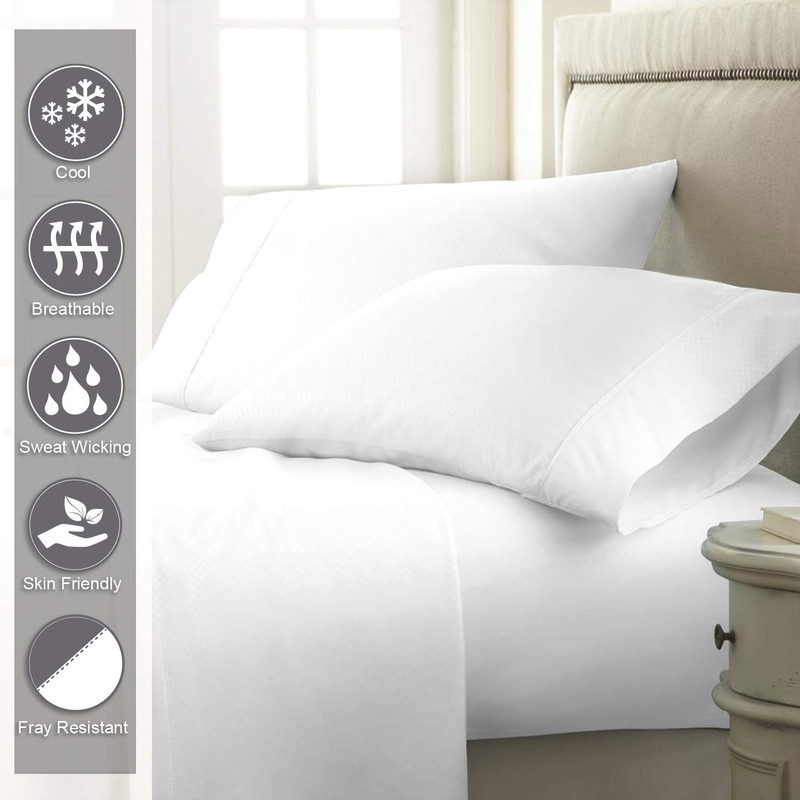 Pizuna 400 Thread Count White 6 Piece Queen Bed Sheets Set Includes 2 Extra P...