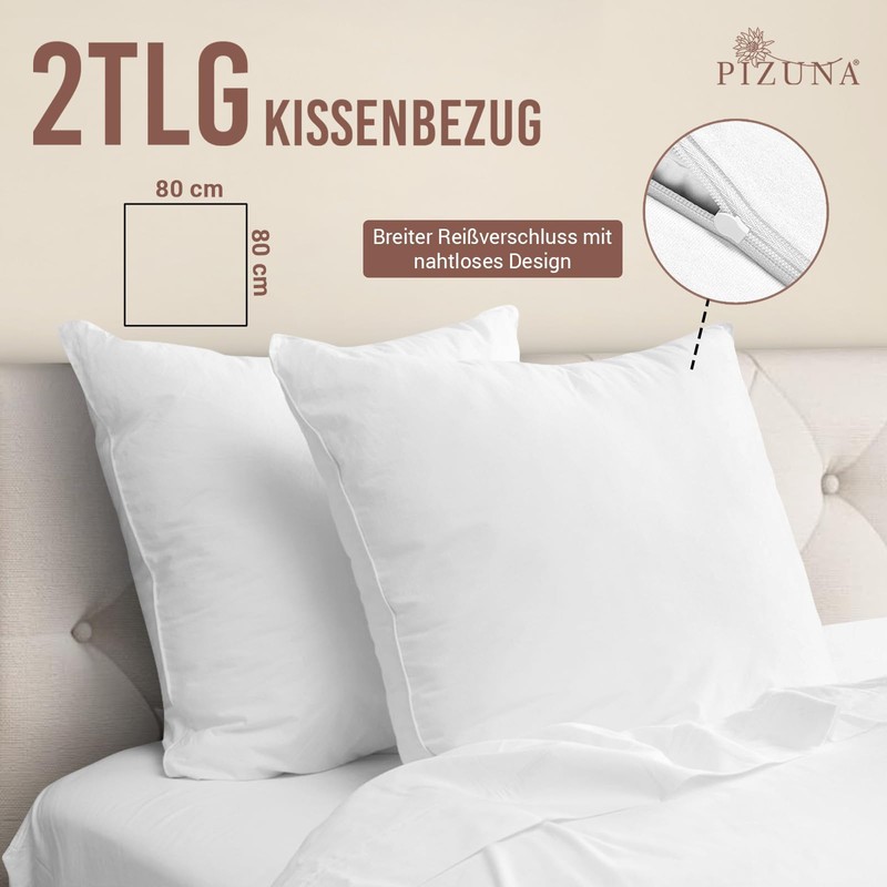 - STYLISH SET OF PILLOWCASES - The set consists of 2 pillowcases (80cm x 80cm) with exquisitely crafted zipper closure that provides a great look and prevents the cotton cushion cover from slipping out. The excellent workmanship reduces loose threads and ensures a soft feel. For best care, close the zip before washing to avoid breakage