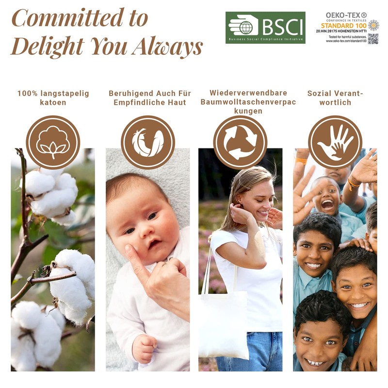 - Sustainable and responsible: This cotton pillowcase set complies with BSCI standards, is socially responsible and environmentally friendly. The recycled packaging may initially have an unpleasant smell, but it disappears after the first wash in warm water. With fade-resistant colours, it is machine washable on a gentle cycle and can be tumble dried on low. The use of bleach may affect the colours.