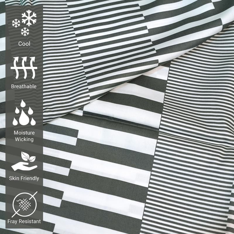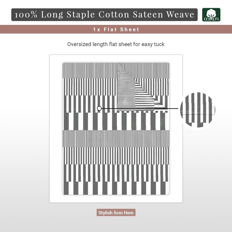 Pizuna Pure 100% Cotton Flat Sheets Only Queen Grey Cascade Stripe (1 PC), Luxurious 400 Thread Count Long Staple Cotton Sateen with 4" Hem (Combed Queen Flat Sheet Only Cotton)