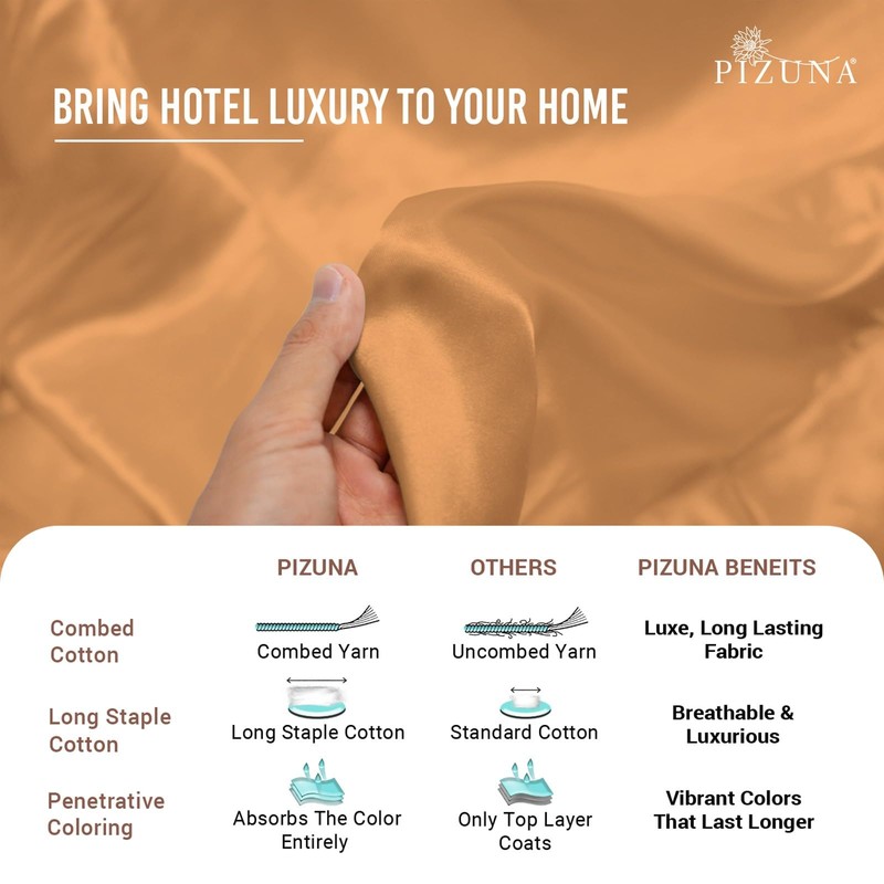 Pizuna Pure 100% Cotton Queen Duvet Cover Set, Luxurious 400 Thread Count Long Staple Cotton Sateen Weave with Button Closure (Combed Apricot Orange Cotton Duvet Cover Queen)