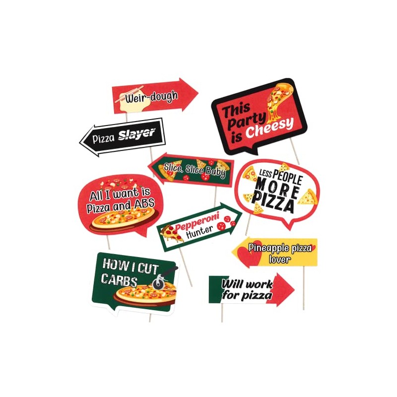 - 🍕 Party Pizza Photo Booth Props Kit - Offers 10 arrow and speech bubble photo booth props, along with 10 bamboo sticks and adhesives required for easy assembly. Photo Props Pizza Kit ensures a complete and immersive photo booth experience during your celebration. With Pizza Party Decorations, you can create a fun and memorable photo booth experience that captures the deliciousness of a pizza party.