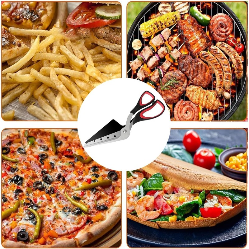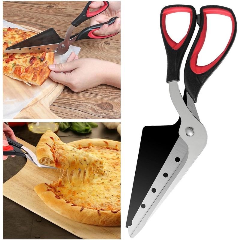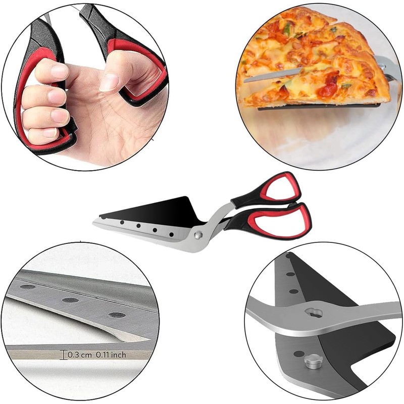 Pizza Scissors - Non-Stick Pizza Scissors with Firm Grip Base - Food Grade Stainless Steel Pizza Cutter - Food Slicer & Pizza Server - Durable, Safe & Mess Free