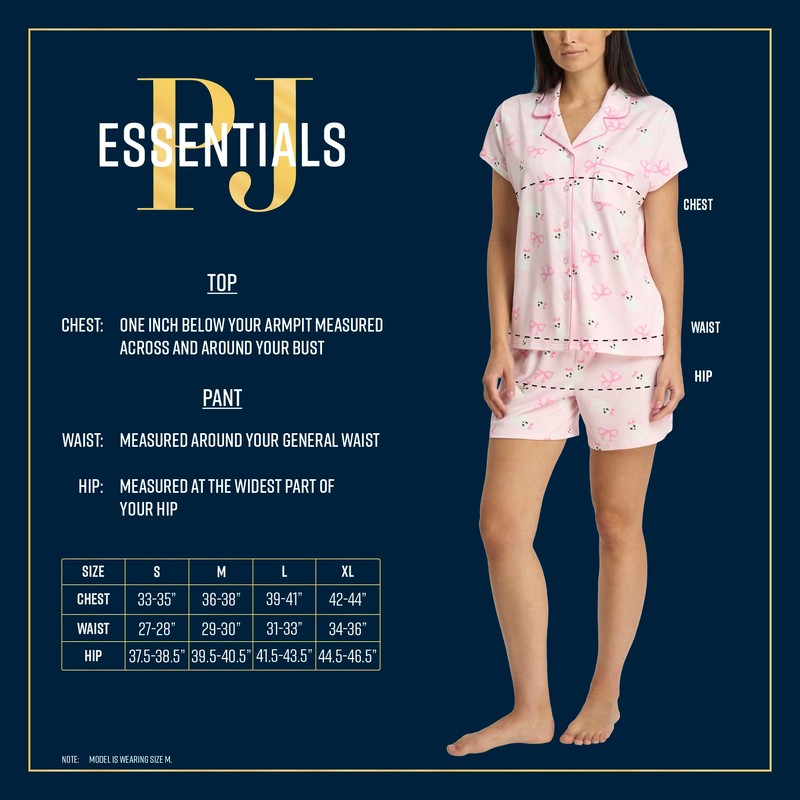 PJ ESSENTIALS Women's 2 Piece Holiday Pajamas - Soft Short Sleeve Button Down Sleepwear Top and PJ Shorts Loungewear Set (US, Alpha, Medium, Regular, Regular, Pink Boo Bows)