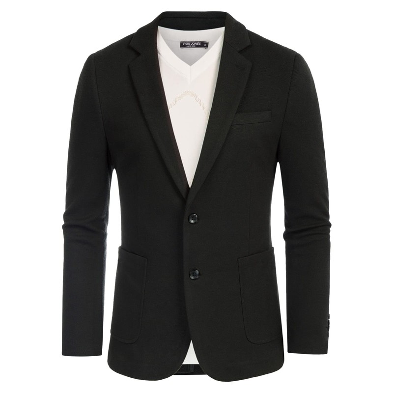 PJ PAUL JONES Casual Blazer for Men Regular Fit Two Button Stretch Knit Sports Coats Black M