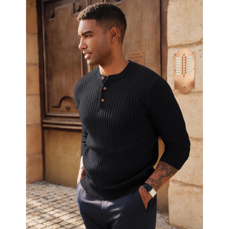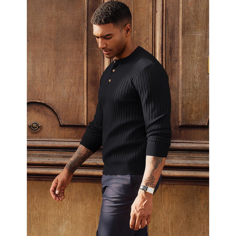 - 【Classic Design】This men sweater features long sleeve with 3 adjustable buttons, vertical stripe detailing, and vintage rib knit texture. Tapered ribbed cuffs and hem create a flattering silhouette for the perfect henley sweater fit.