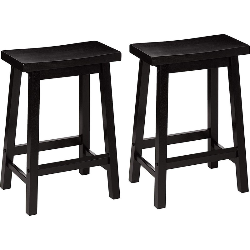 PJ Wood 24 Inch Saddle Seat Counter Stool Pack 2 - Black