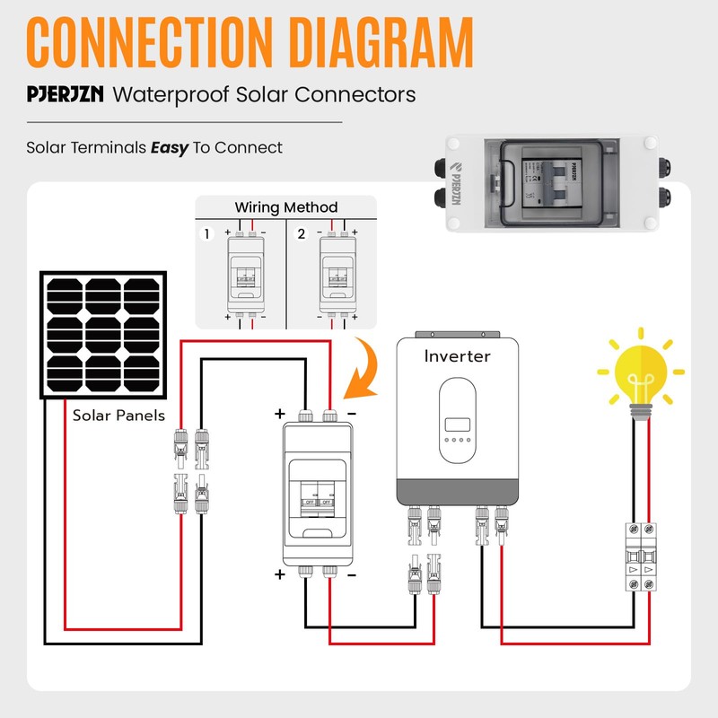 - 𝐏𝐫𝐞𝐦𝐢𝐮𝐦 𝐐𝐮𝐚𝐥𝐢𝐭𝐲: .Pjerjzn solar panel disconnector switch are newly upgraded with connectors that do not differentiate between male and female wires for quick installation. Made of premium quality material, thickened purple copper coil, wider operating handle, Transparent cover for easy checking of operational status, waterproof sealing silicone ring, IP65 waterproof and dustproof.