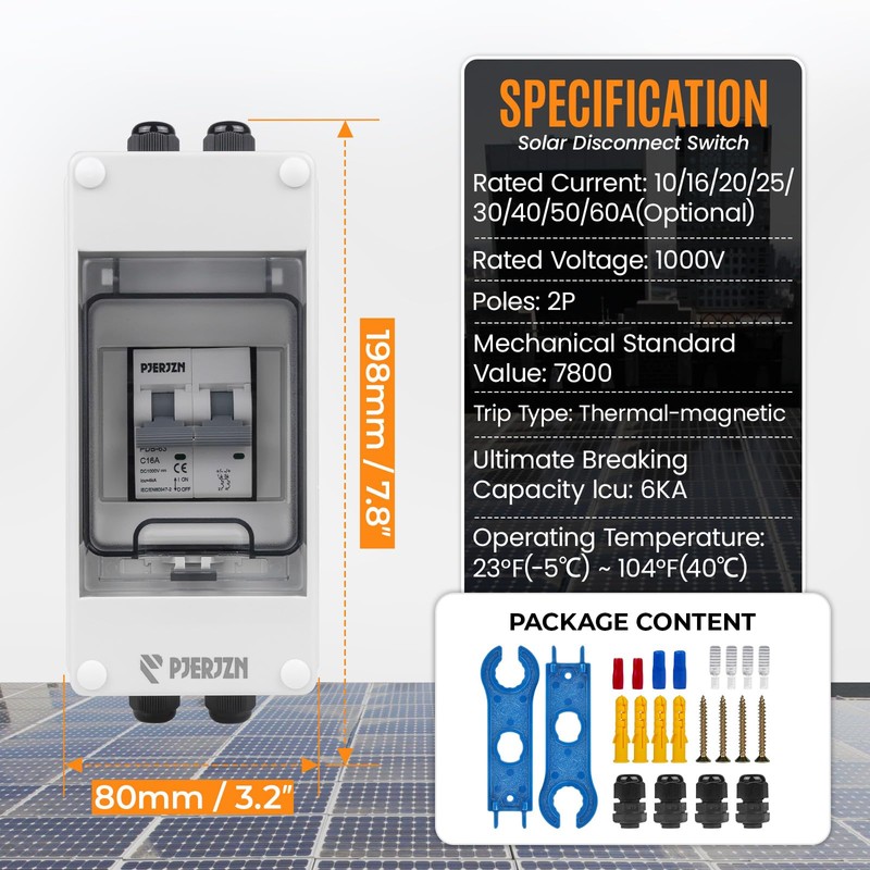 - 𝐒𝐩𝐞𝐜𝐢𝐚𝐥𝐭𝐢𝐞𝐬 𝐚𝐧𝐝 𝐬𝐞𝐫𝐯𝐢𝐜𝐞𝐬: If there is any problem with the product you received, please feel free to look for the platform or our customer support centre, we will provide you with excellent service. You can feel confident in choosing our solar panel disconnect switch for your electrical protection needs. Package includes 1x disconnect switches, 4x screws, 2x solar connector, 2xplastic baffle and 1x product manual.