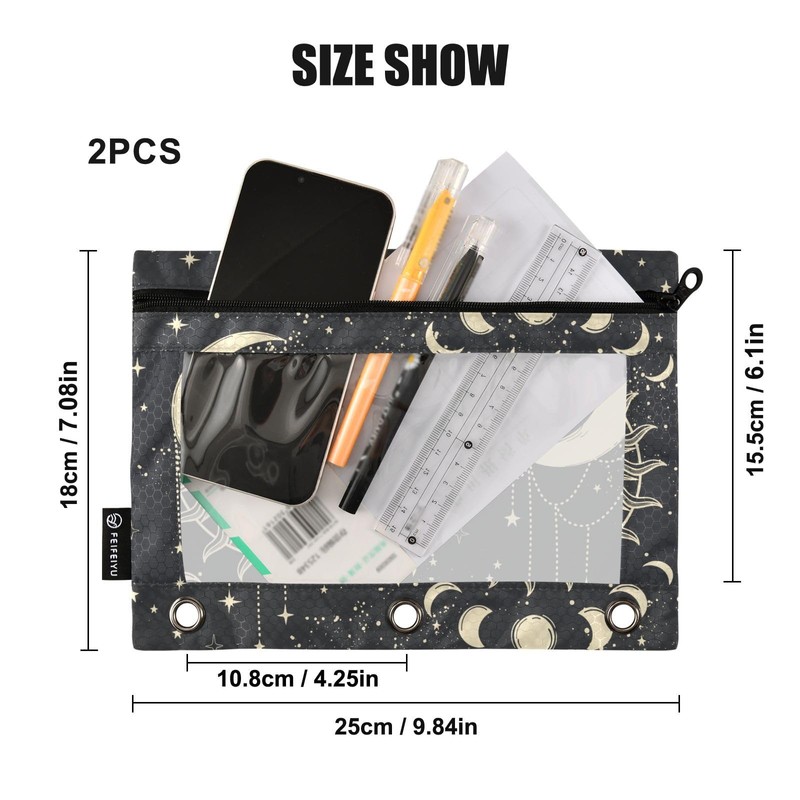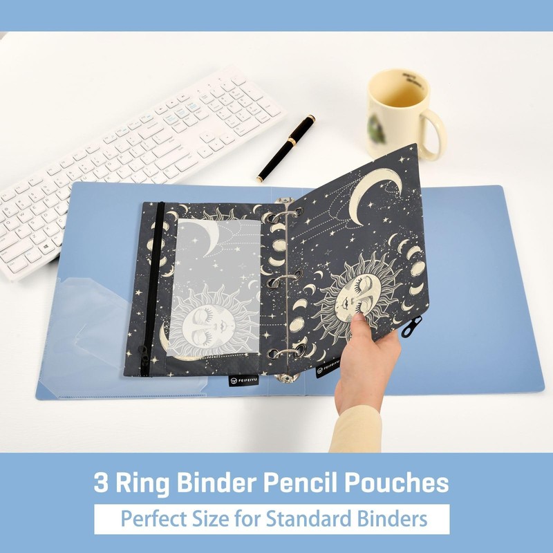- [Large Capacity]: Zipper Pencil Pouch for 3 Ring Binder: 9.8 x 7 in (25 x 18 cm). Usable sizes: 9.8 x 6 in (24.5 x 15.5 cm). There is enough space to store the items you need.