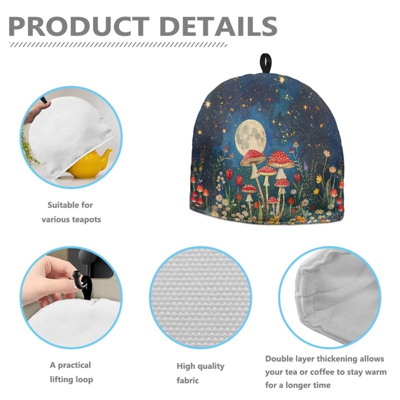 PJHEQOXE Mushrooms Moon Pattern Tea Cozy for Teapot Dome Teapot Cover Customized Teapot Covers with Handle Dust Cover Kitchen Kettle Dust Cover Can Hung and Folded Tea Pot Kitchen Decorative (Blue)