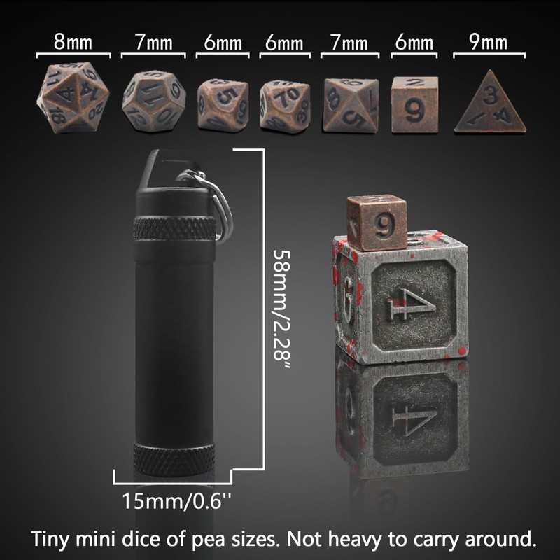 • A Fun Way to Carry Dice: We totally understand the feel of having one set at hand anytime anywhere is just, cool. The metal dice tube with mini dnd dice inside is a perfect solution.